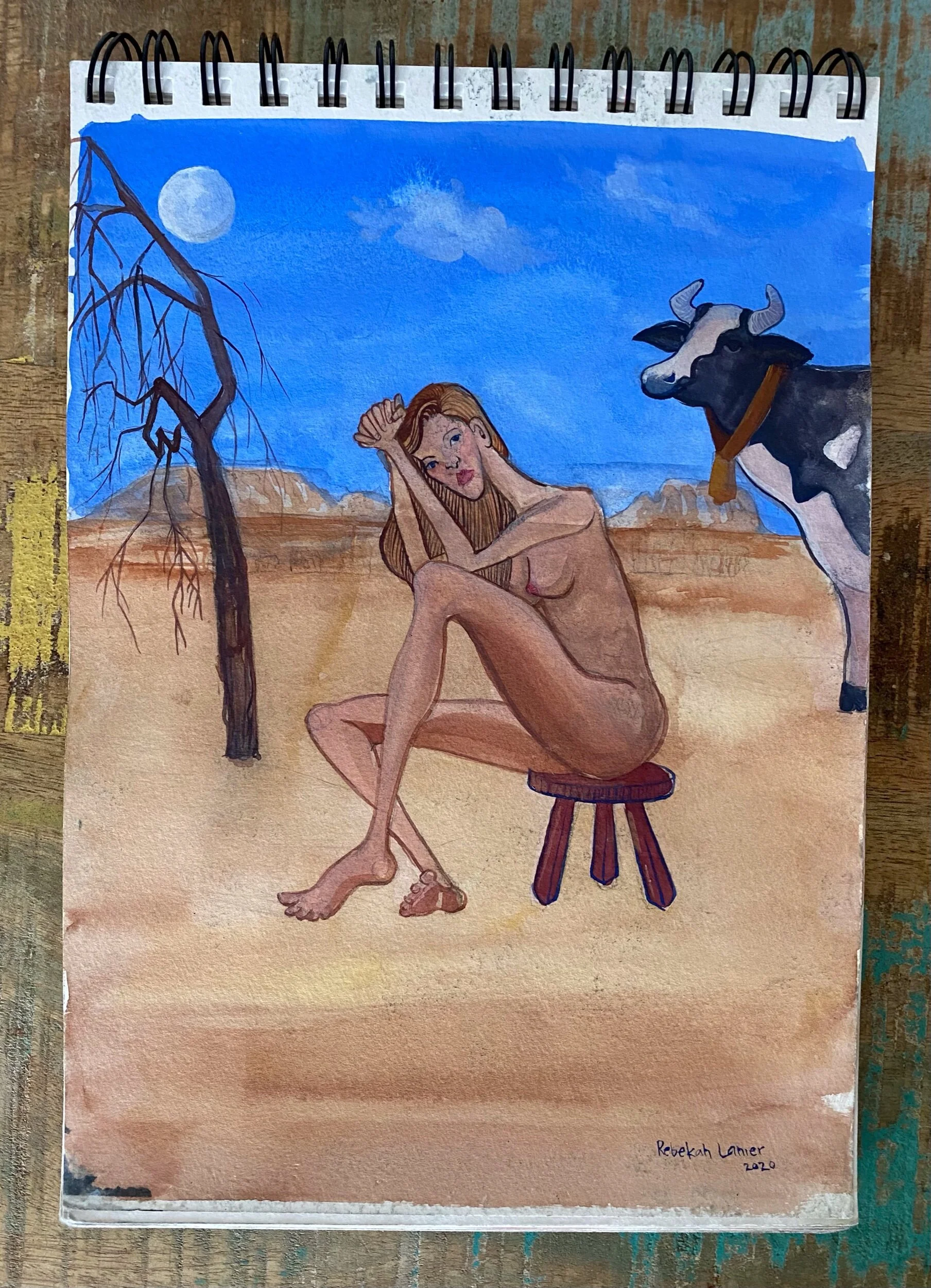 Inspired by a set of statues I saw sitting a gazing at the sky near Faro’s airport. I painted this sitting on the beach. It was already a challenge with sand mixing into my palette and water, and then the rain started.